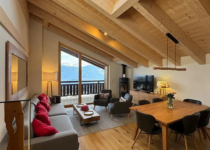 住宿场所距离Anzere, Pralan巴士站很近,步行只需10分钟。 New Apartment With View有山脉景的露台。